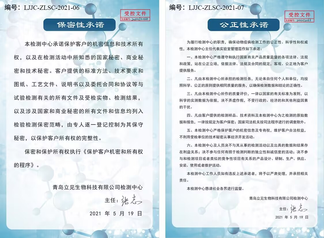 检测中心恪守“客观公正、准确规范、服务满意”的质量方针,坚持公正性和保密性的工作原则,秉承以用户为中心的服务态度,严格按照质量管理体系ISO17025的要求开展检测活动,努力提升行业整体检测水平,促进国家动物防疫事业发展,为动物健康、食品安全和同一健康而努力。